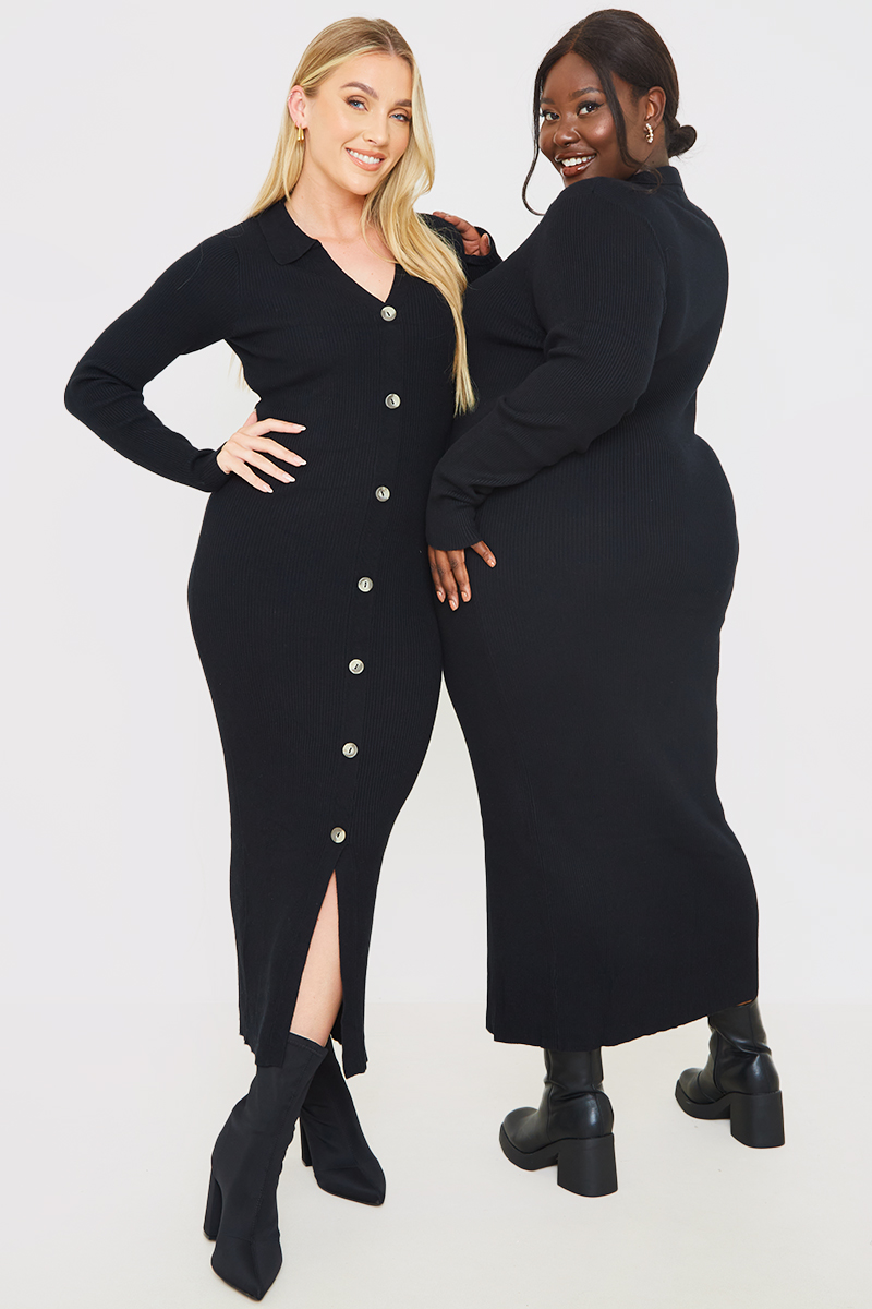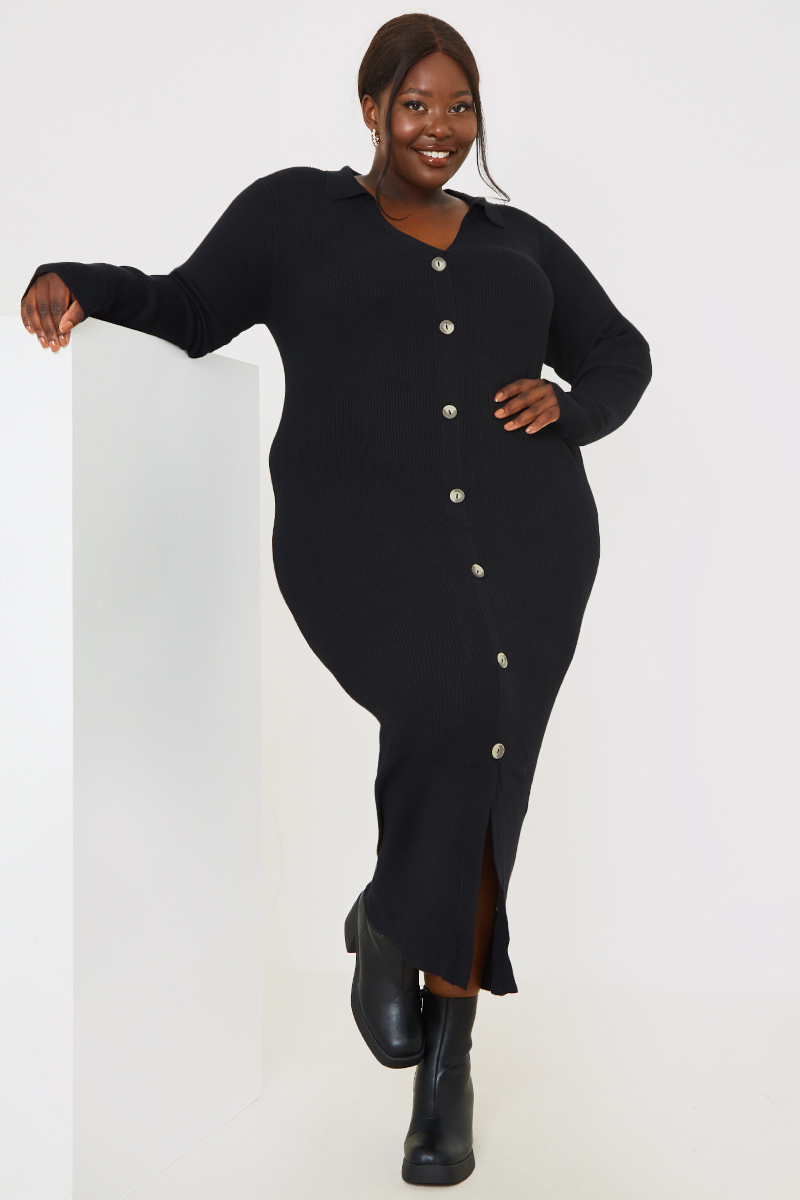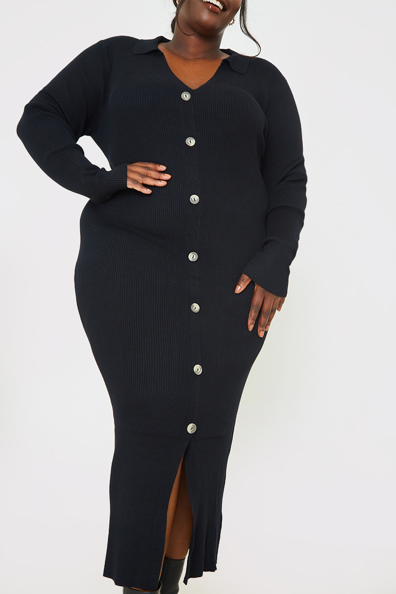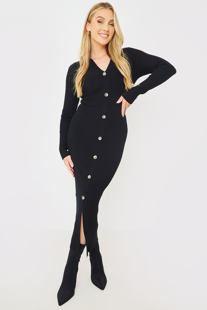 Rib Knitted Button Through Midaxi Dress